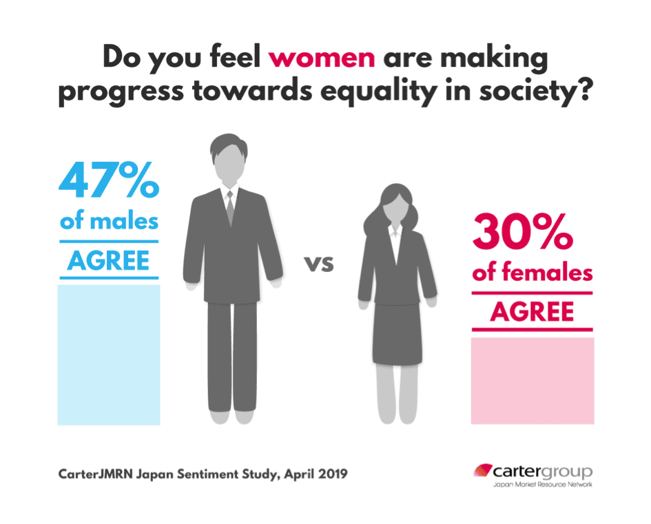 In our 2019 CarterJMRN Japan Sentiment Study, we asked 1000 men and women across all 47 prefectures whether they felt that women are...