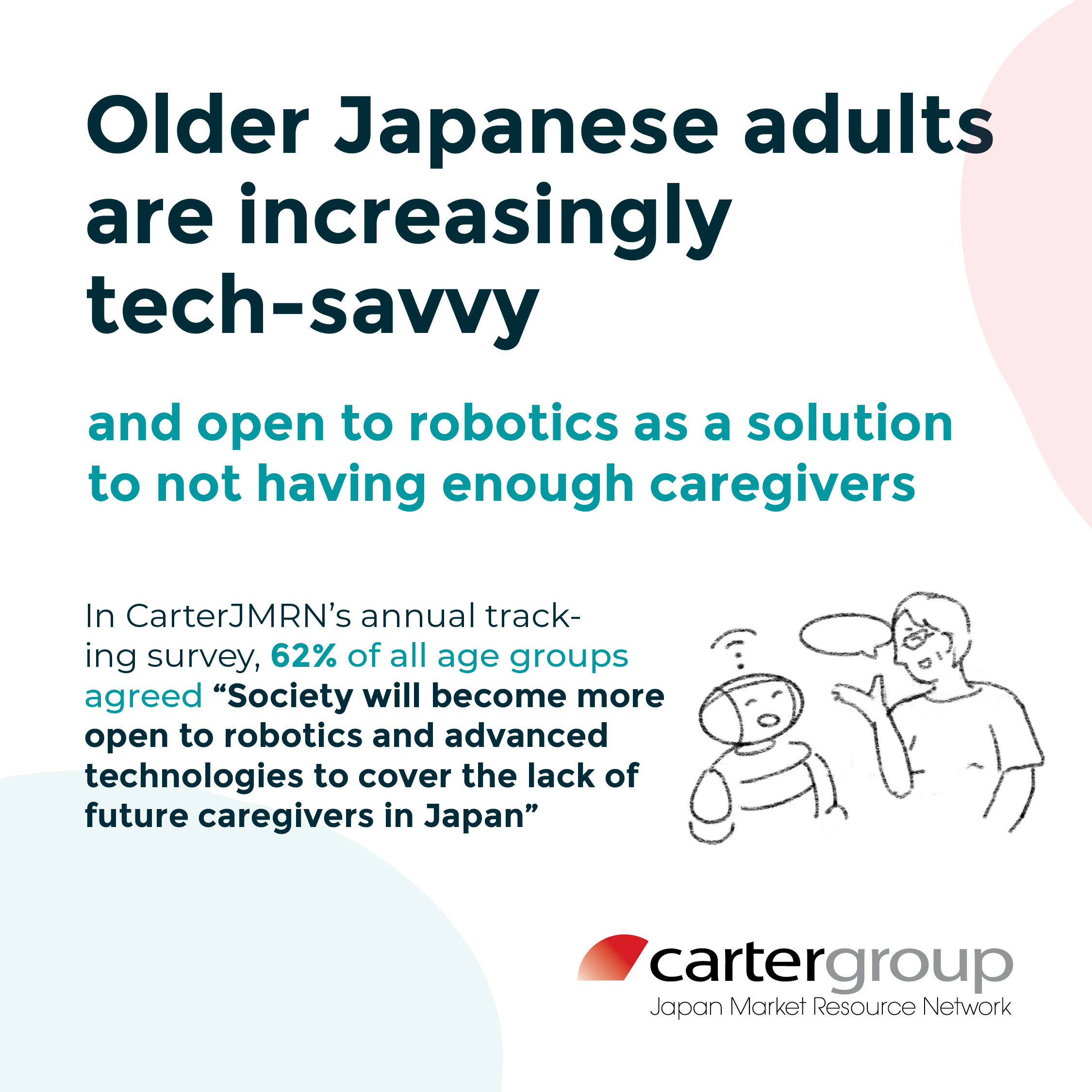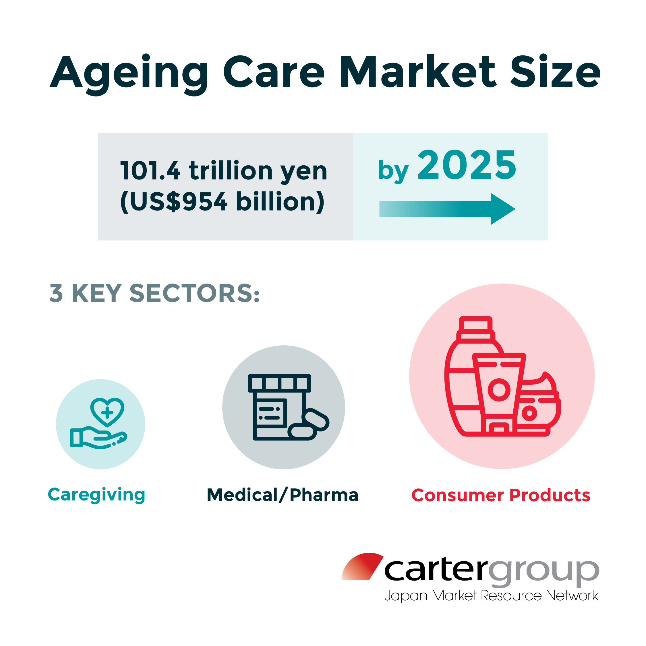 It’s no secret that 30% of Japan’s population is already aged 65+, representing 36 million consumers today, and rising. More importantly, Japanese older adults are financially solvent, open-minded to tech, and enjoy true quality of life (both physically and cognitively) for longer than their Western counterparts. The so-called “aging care” market (i.e., medical/pharmaceutical, caregiving and consumer products segments) will by 2025 be a 101.3 trillion yen (US$954 billion) industry – larger than for domestic automobiles, finance, and consumer electronics. That’s BIG.